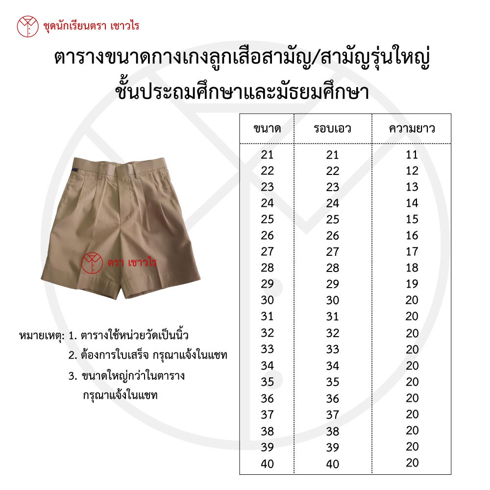 กางเกงลูกเสือ สีกากี กางเกงนักเรียน ชั้นประถมศึกษา ชั้นมัธยมศึกษา ตรา เชาวไร