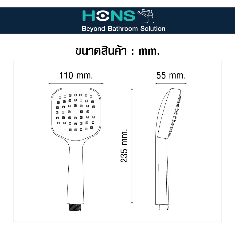 HONS Bathroom ชุดฝักบัวสายอ่อน SS112-CH ABS สีโครม สายน้ำนุ่มนวล ไม่ทำให้เจ็บผิว อุปกรณ์ครบชุด รับประกันสินค้า 1 ปี