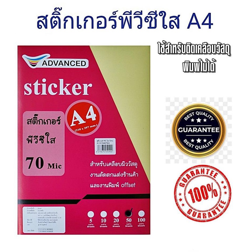 สติกเกอร์ สำหรับเคลือบผิววัสดุ ติด PVC ใส 70 Mic A4 50 แผ่น - 100 ผ สำหรับเคลือบผิววัสดุเท่านั้น พิมพ์ไม่ได้ทุกชนิด!