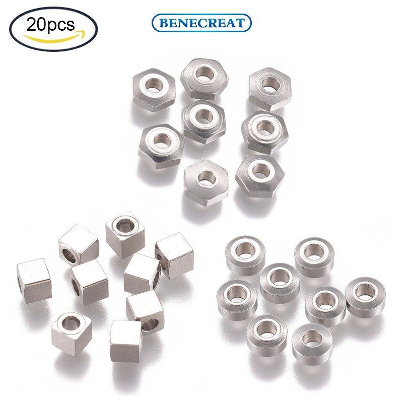 Benecreat ลูกปัดสเตนเลส 304 ทรงกลม แบน หกเหลี่ยม ลูกบาศก์ สเตนเลส 304 10 ชิ้น ถึง 50 ชิ้น