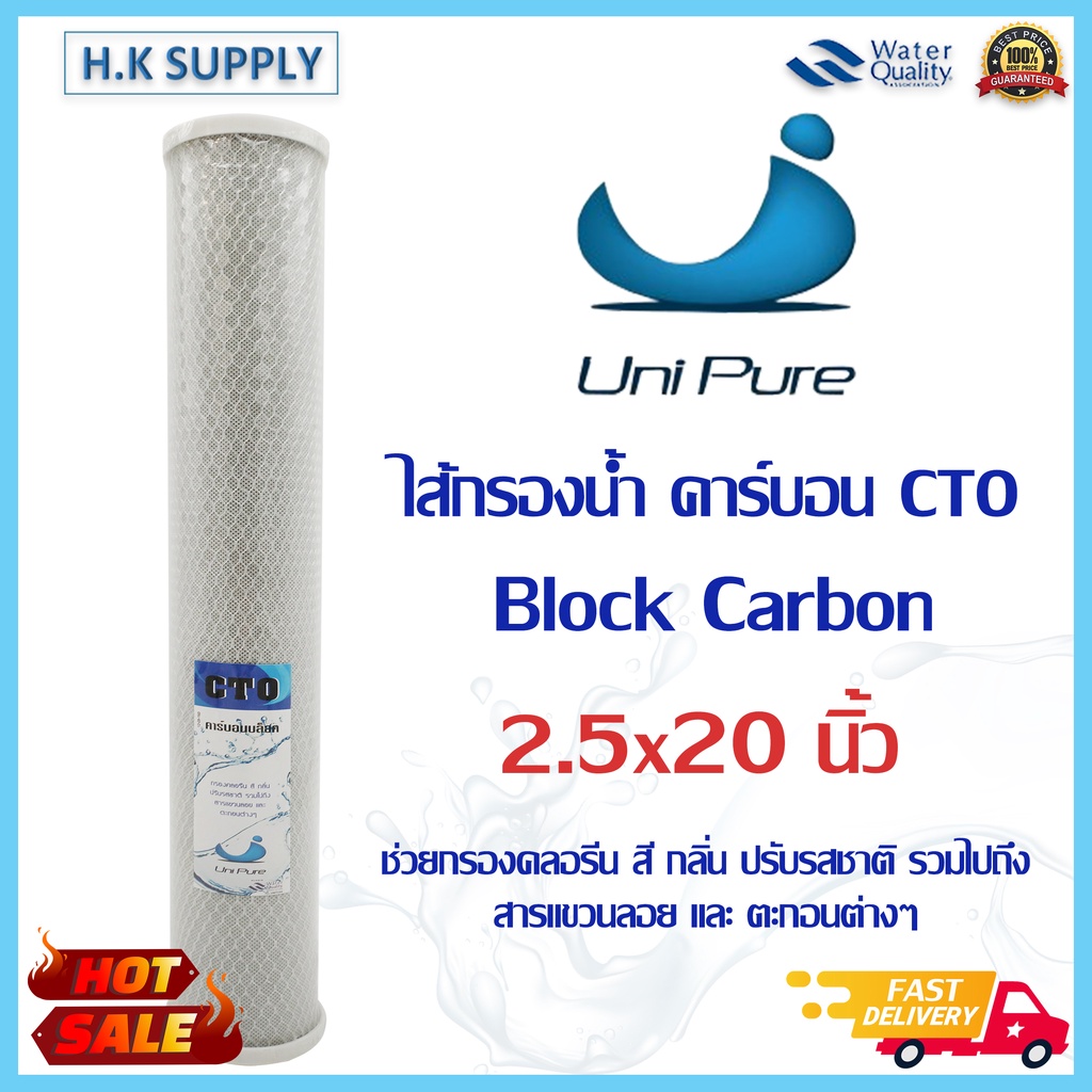 Pett ไส้กรองน้ำ CTO 20 นิ้ว Block Carbon ขนาด 20"x2.5" ไส้กรองน้ำ คาร์บอน ชนิดอัดแท่ง Unipure fastpure Original fastpure