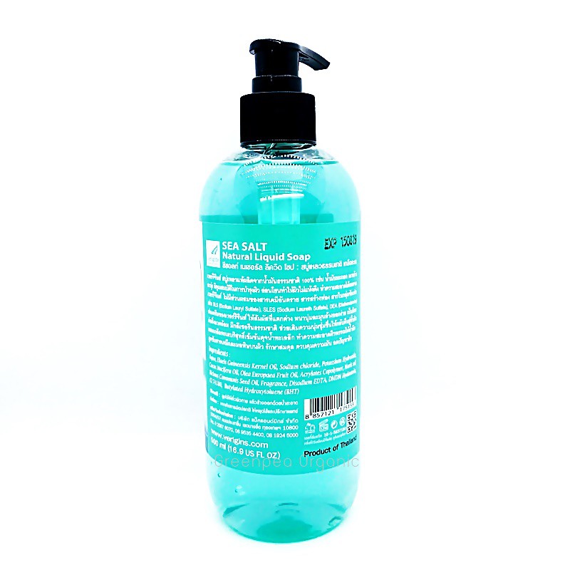 Verigins สบู่เหลวแท้ เกลือทะเล ขนาด 500ml. เวอร์ริจินส์ Sea Salt Natural Liquid Soap 500ml. ปราศจากซัลเฟตและพาราเบน