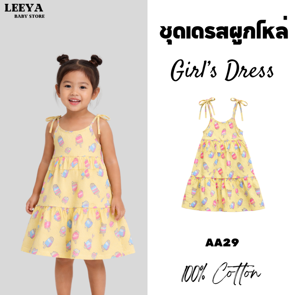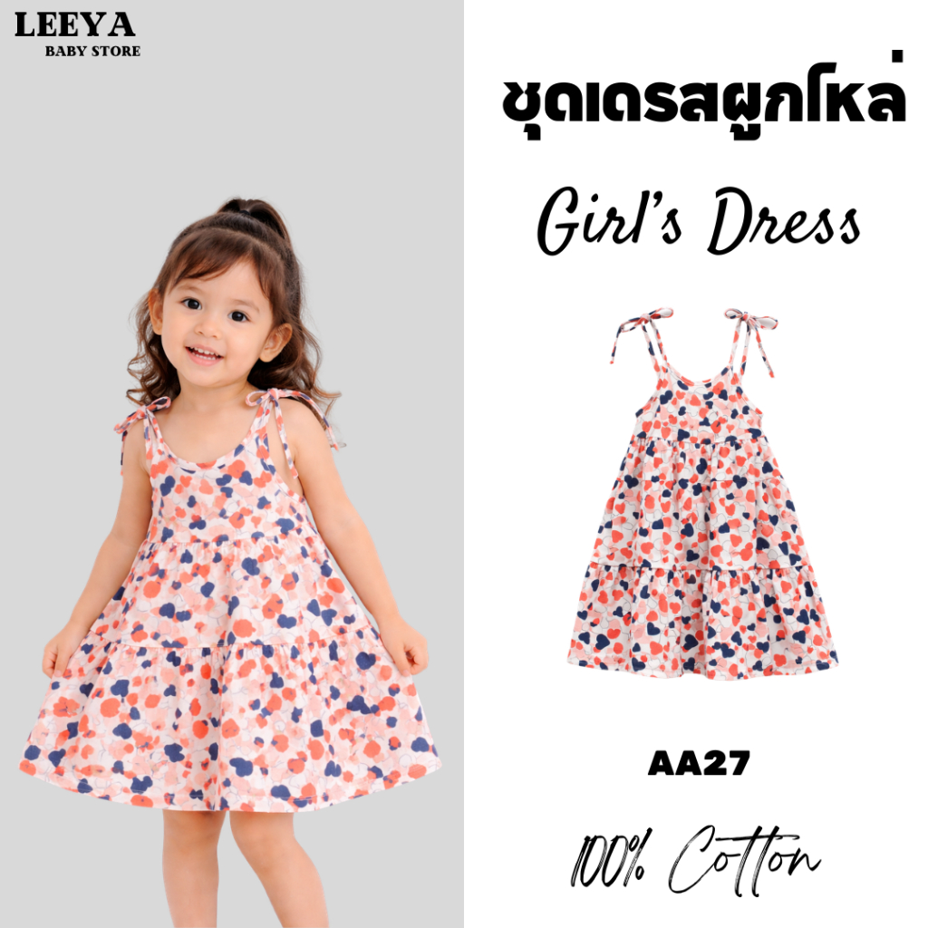 Leeya AA3 ชุดเดรสเด็กผู้หญิง ชุดเดรสผูกไหล่ สไตล์น่ารัก 6 เดือนถึง 5 ปี Baby & Kids Cotton Dress Super Cute