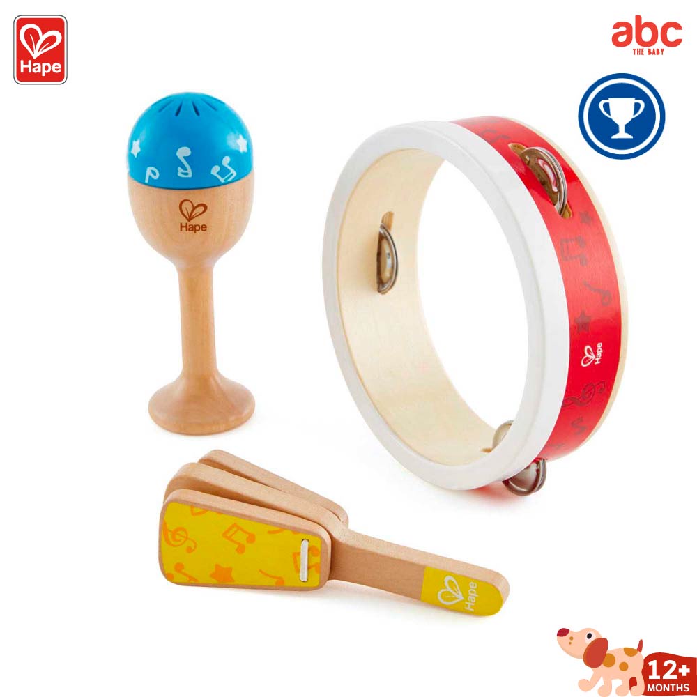 Hape ของเล่นไม้ ของเล่นดนตรี ชุดดนตรี 3 ชิ้น Junior Percussion Set ของเล่นเสริมพัฒนาการ 1 ขวบ ขึ้นไป