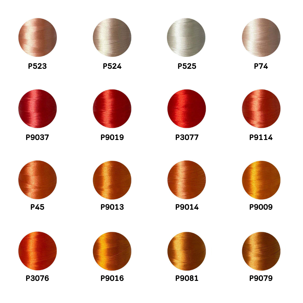 ไหมปัก GEM Embroidery Thread โทนส้ม Orange ซักฟอกสีไม่ตก 3,000 เมตร Oeko-Tex Class 1