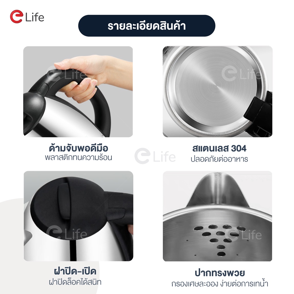Elife กาต้มน้ำไฟฟ้าสีเงิน ES-SH2000S 2 ลิตร 1500W กาน้ำร้อน วัสดุทำจากสแตนเลส ร้อนเร็ว ตัดไฟอัตโนมัติ คุณภาพดี พร้อมส่ง