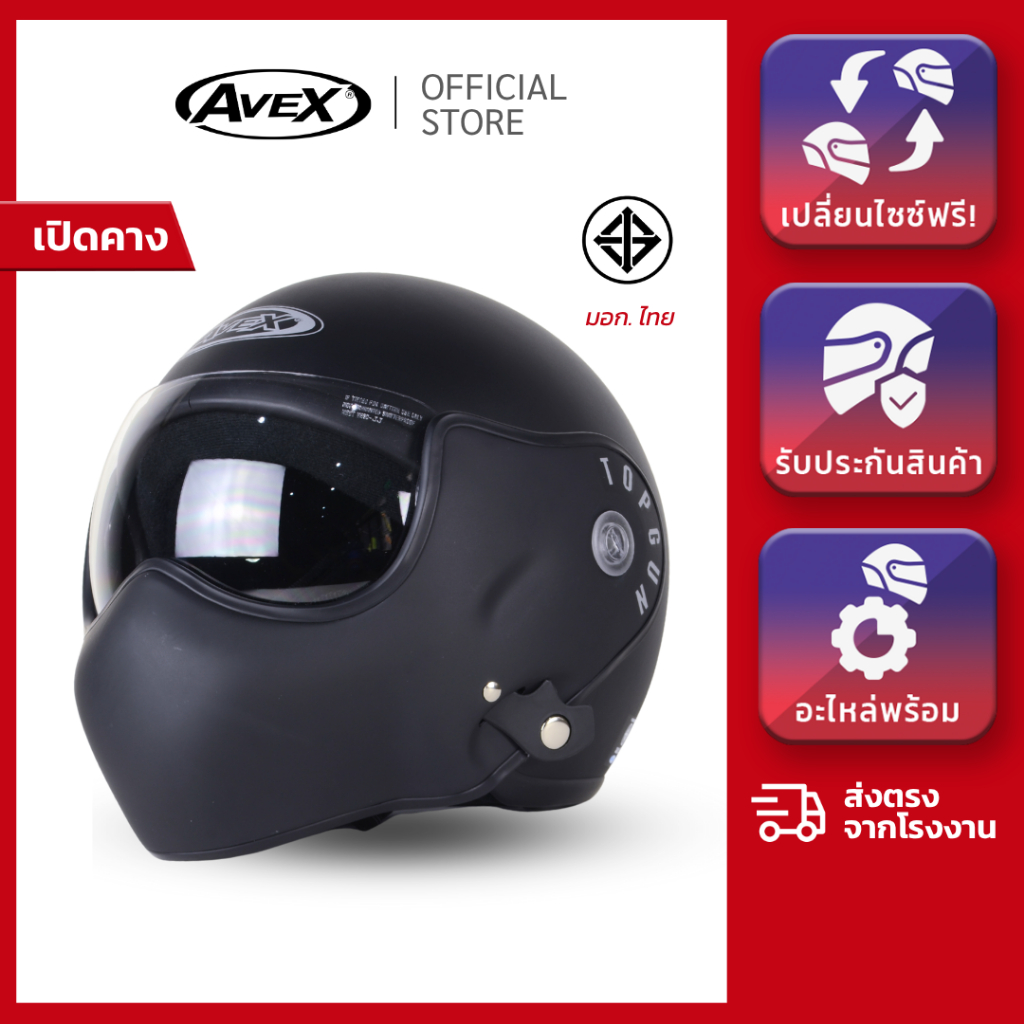 หมวกกันน็อค เปิดคาง ทรงนักบิน Topgun [ส่งตรงจากโรงงาน ของแท้!]