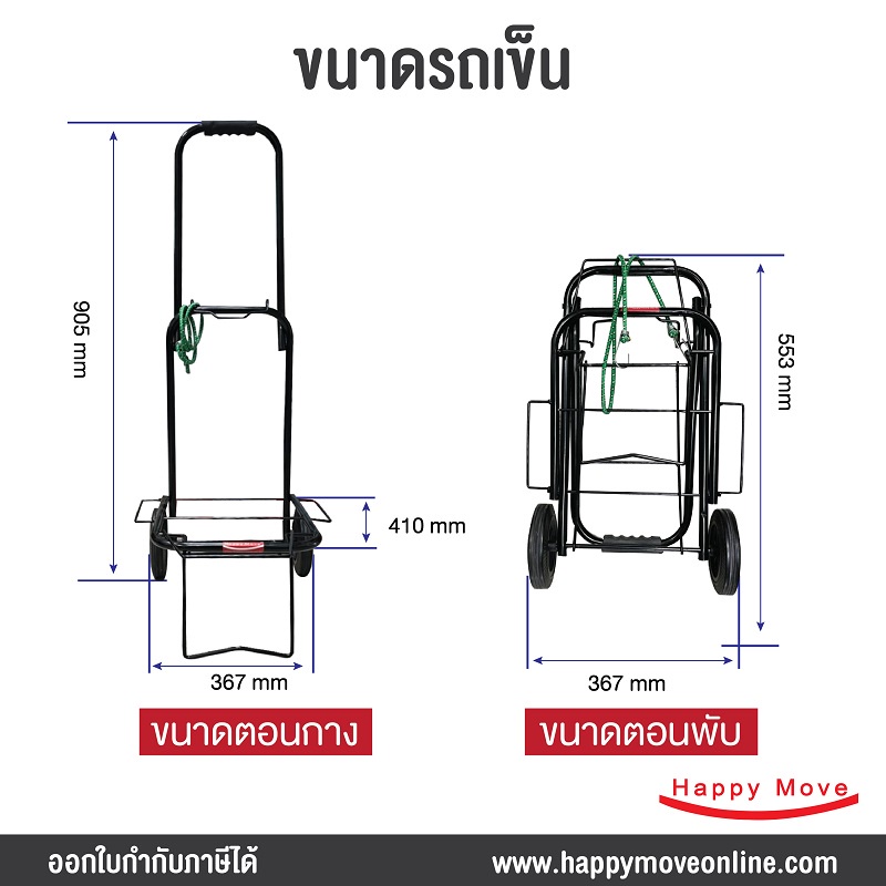 รถเข็นเหล็ก2ล้อสำหรับเข็นของ ล้อขนาดใหญ่เข็นง่าย รถเข็นพับเก็บได้ เบา เคลื่อนย้ายสะดวก Happy Move
