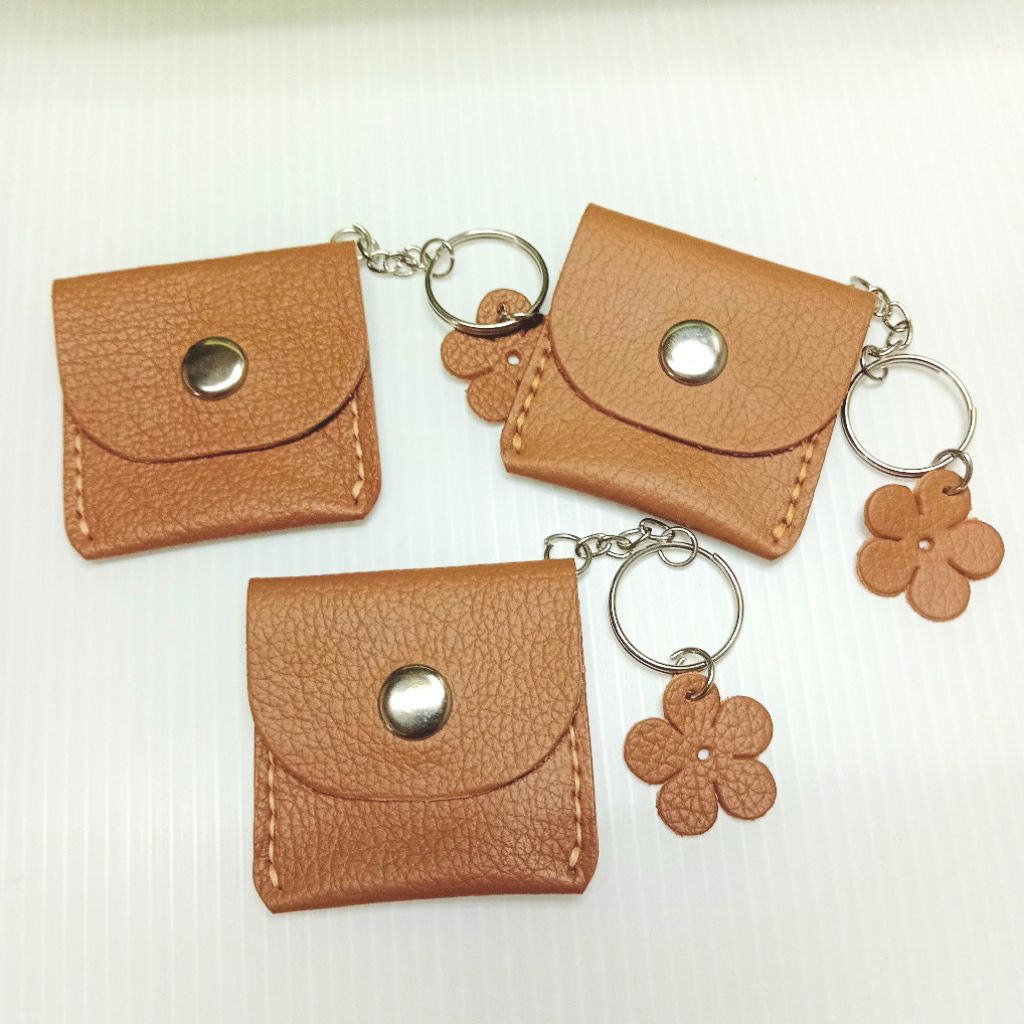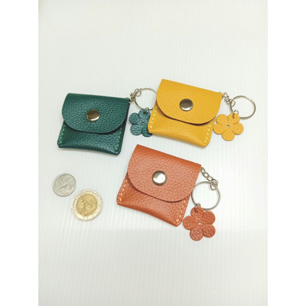 พวงกุญแจหนังแท้,กระเป๋าจิ๋ว (ใบเล็กๆ)งานตัดเย็บมือ ขนาด 5.5×5.5 เซนติเมตร