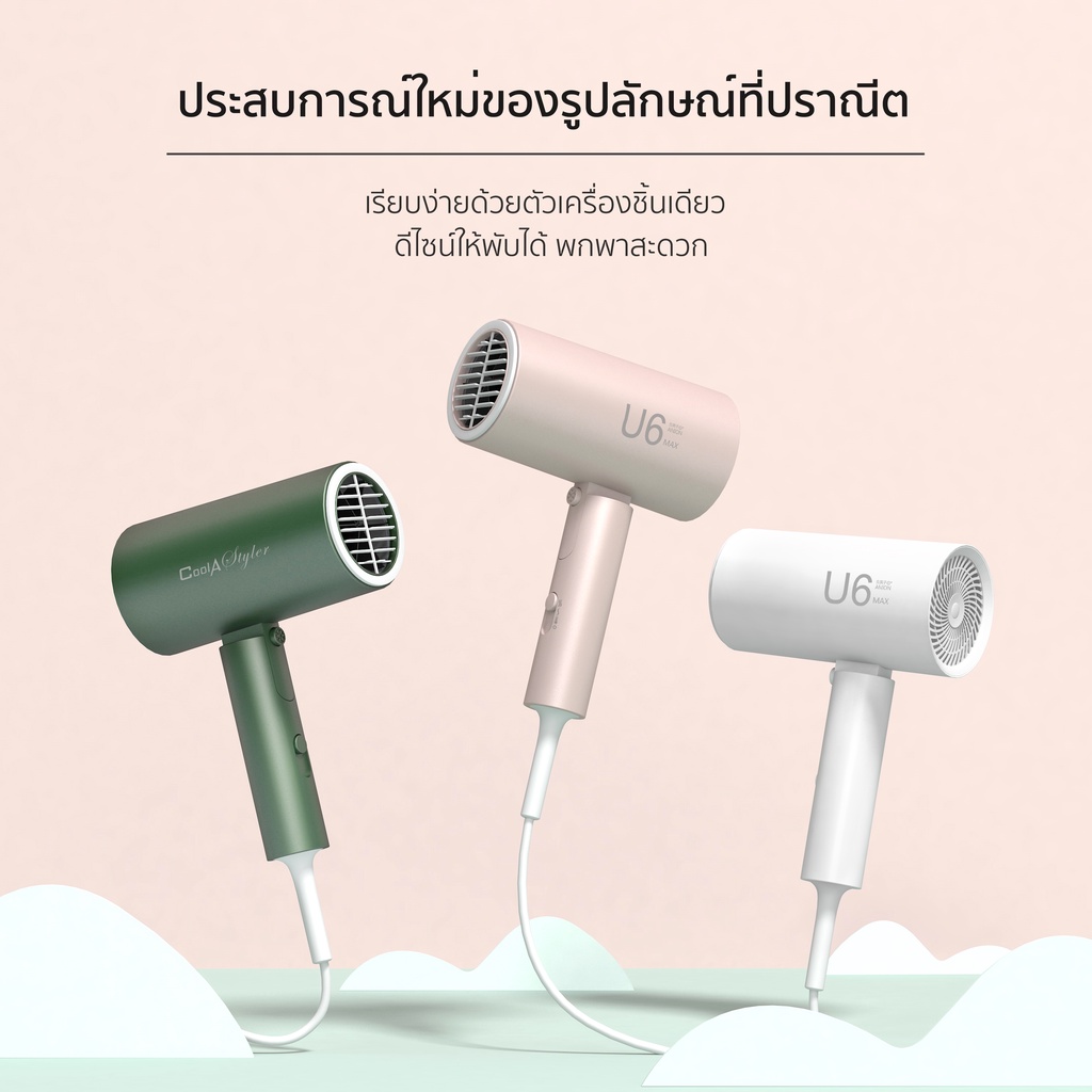 CoolAstyler ไดร์เป่าผม แบบพกพา มอก. เครื่องเป่าผม มีลมเย็น1800W 1500W 1200W 1000W มอก. อุปกรณ์ทำผม ไดเป่าผม AI ไดร์
