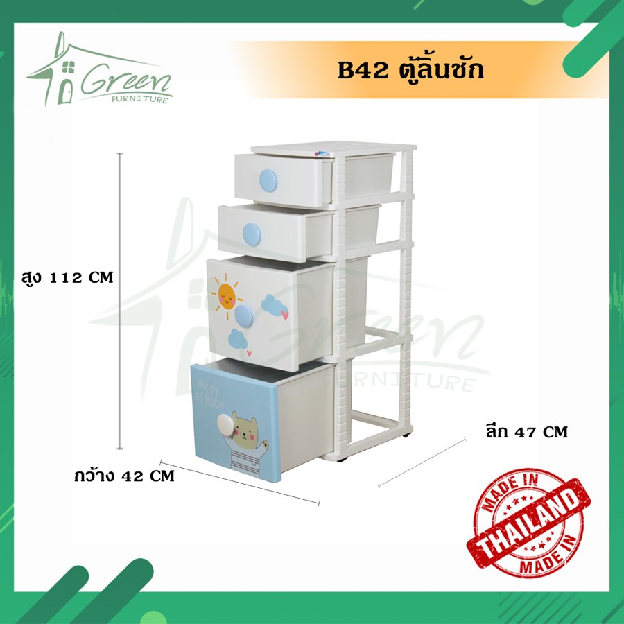 ตู้ลิ้นชักพลาสติก ตู้เก็บของพลาสติก B42 ลายคิวท์แบร์ ลายคิวท์มันนี่ (พลาสติกหนาพิเศษ)