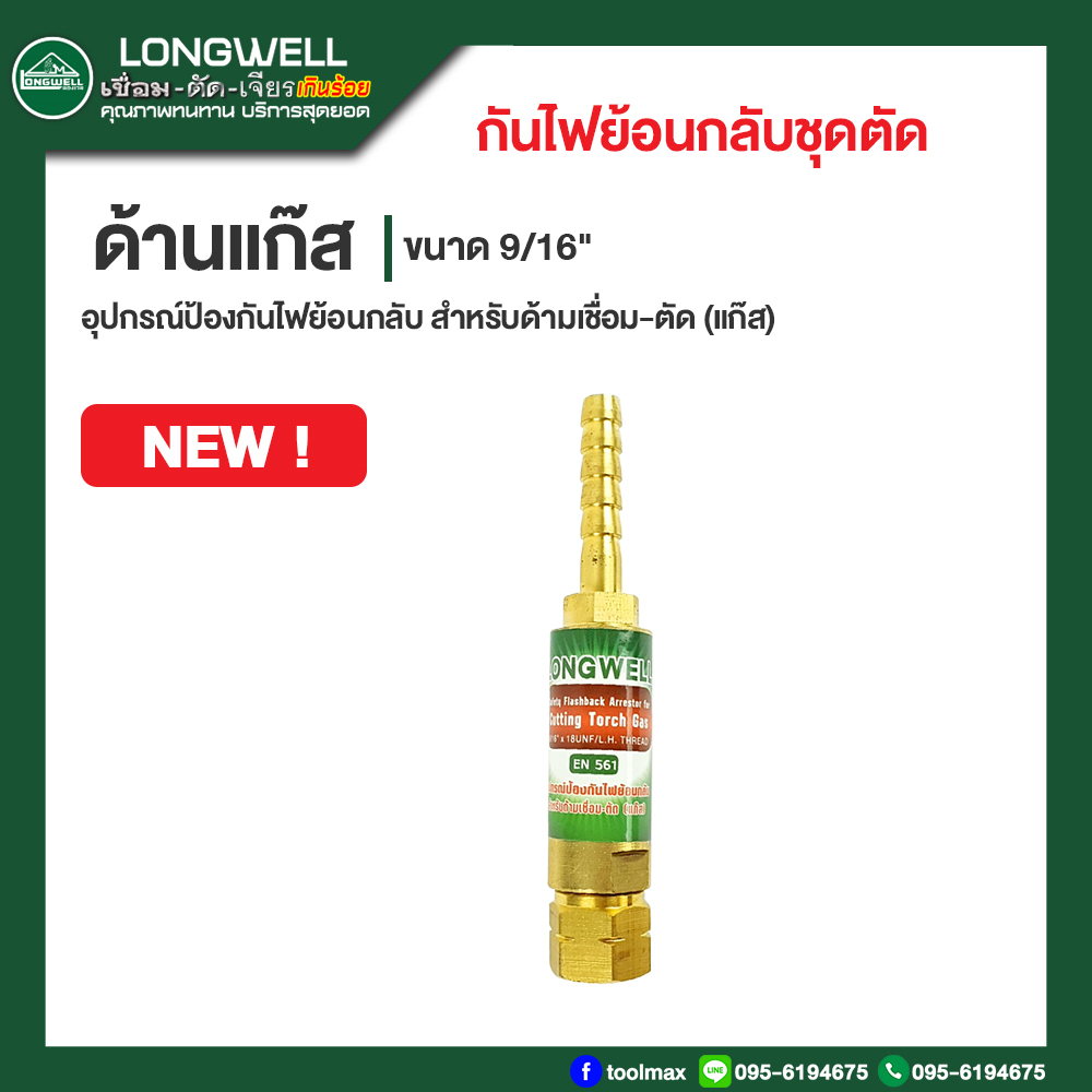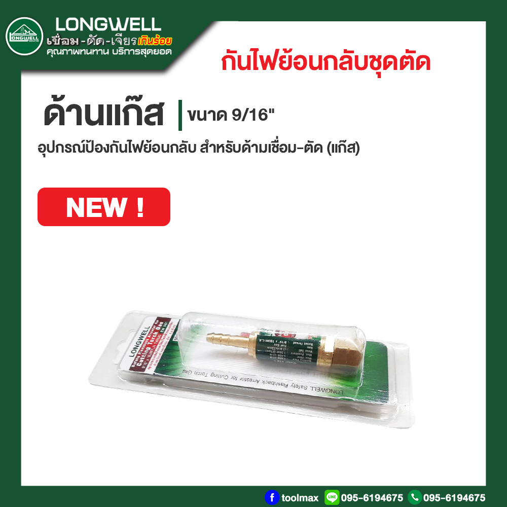 Longwell กันไฟย้อนกลับชุดตัด ด้านแก๊ส ตัวยาว 9/16