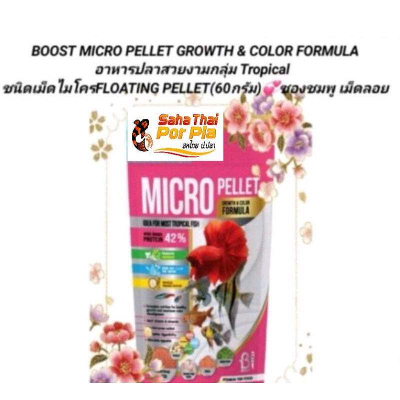 BOOST MICRO PELLET GROWTH & COLOR FORMULAอาหารปลา Tropicalซองชมพู ชนิดเม็ดลอยไมโครFLOATING PELLET(60กรัม)💞ซองชมพู