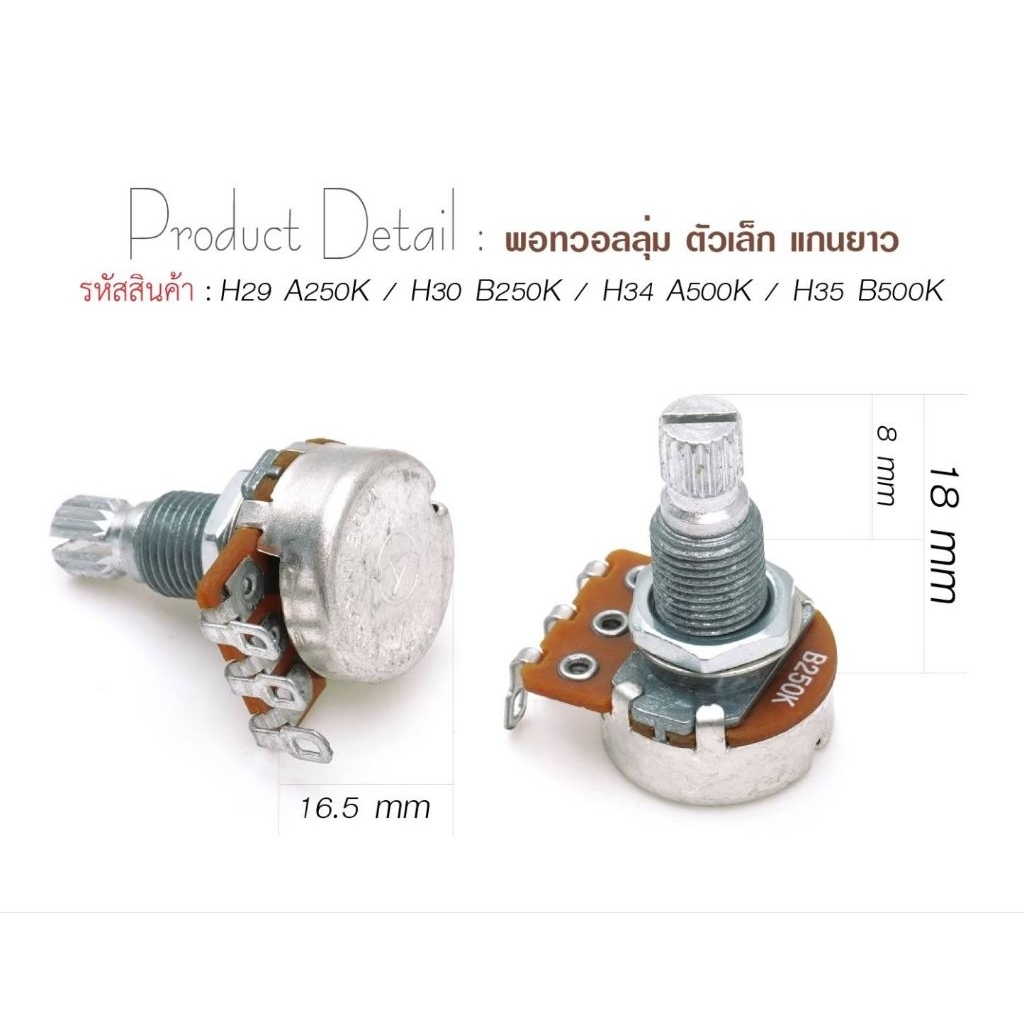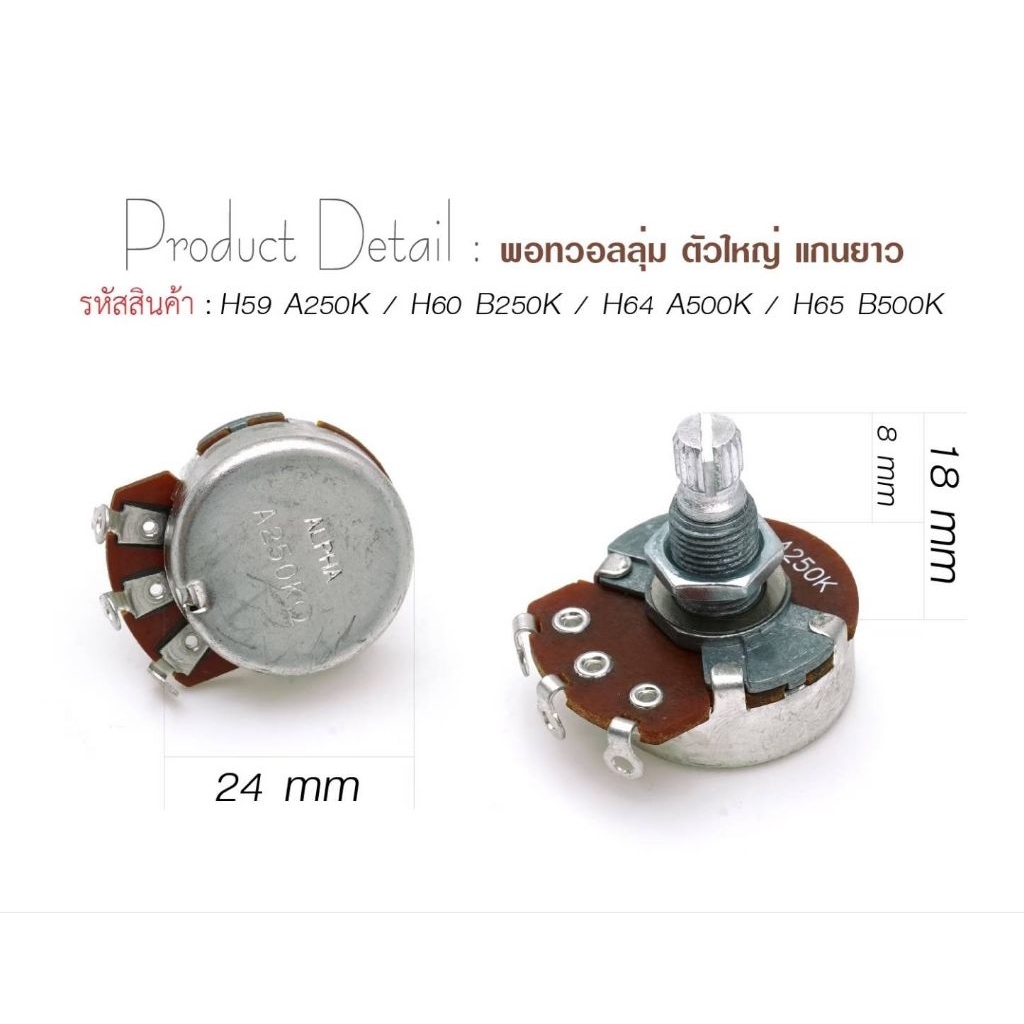Paramount ปุ่มหมุนวอลุ่ม (พอทวอลุ่ม พอทโทน) A250K B250K A500K B500K ขนาดเล็ก ขนาดใหญ่ แกนสั้น แกนยาว (พอทวอลุ่ม2ชั้น)