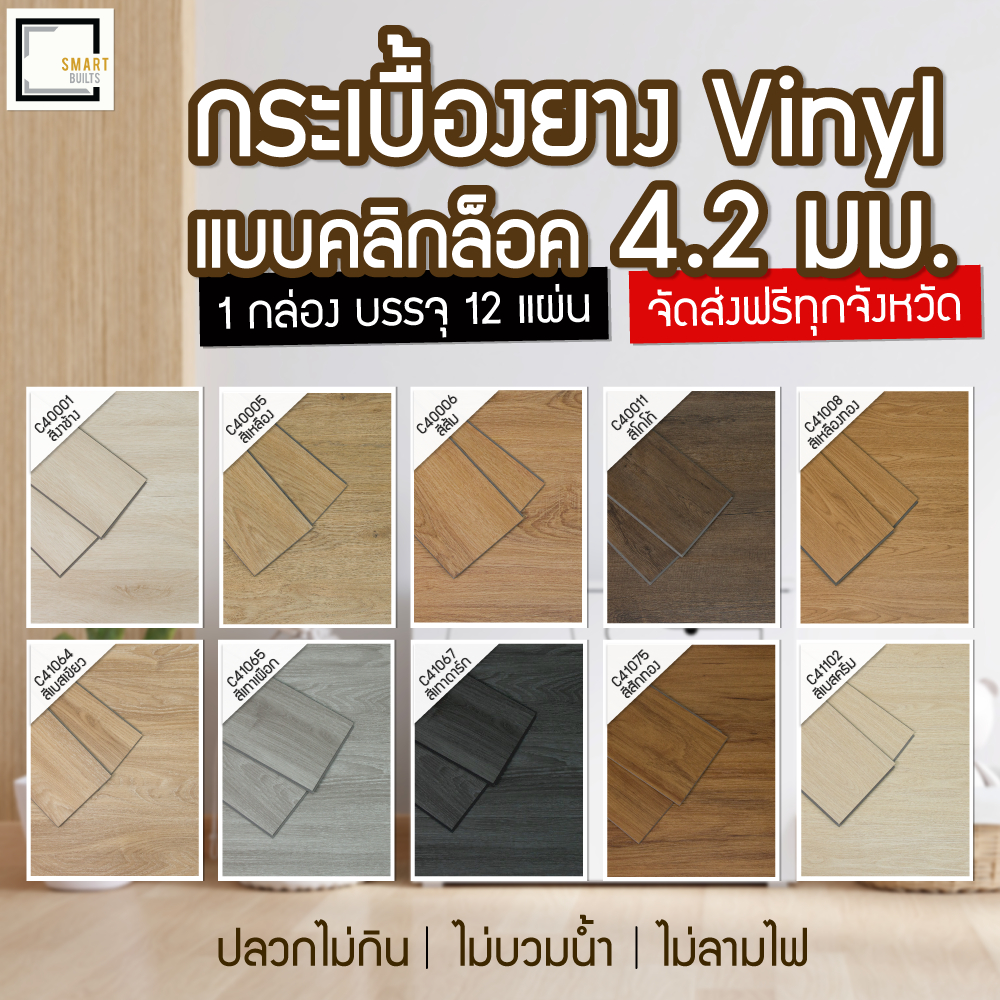 Smartbuilts [จัดส่งฟรี-ไม่ใช้กาว] กระเบื้องยางไวนิล ลายไม้ (คลิกล็อค)ความหนา 4.2 มม.ปูได้ 2.24 ตรม.