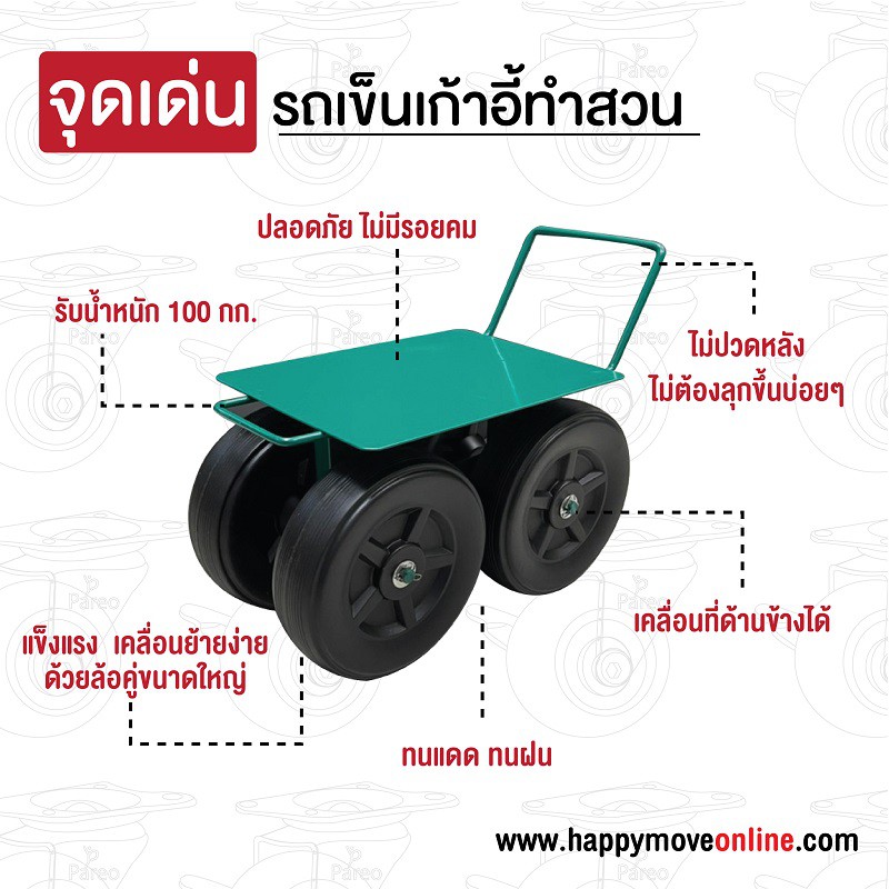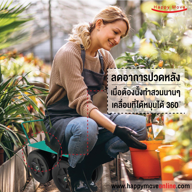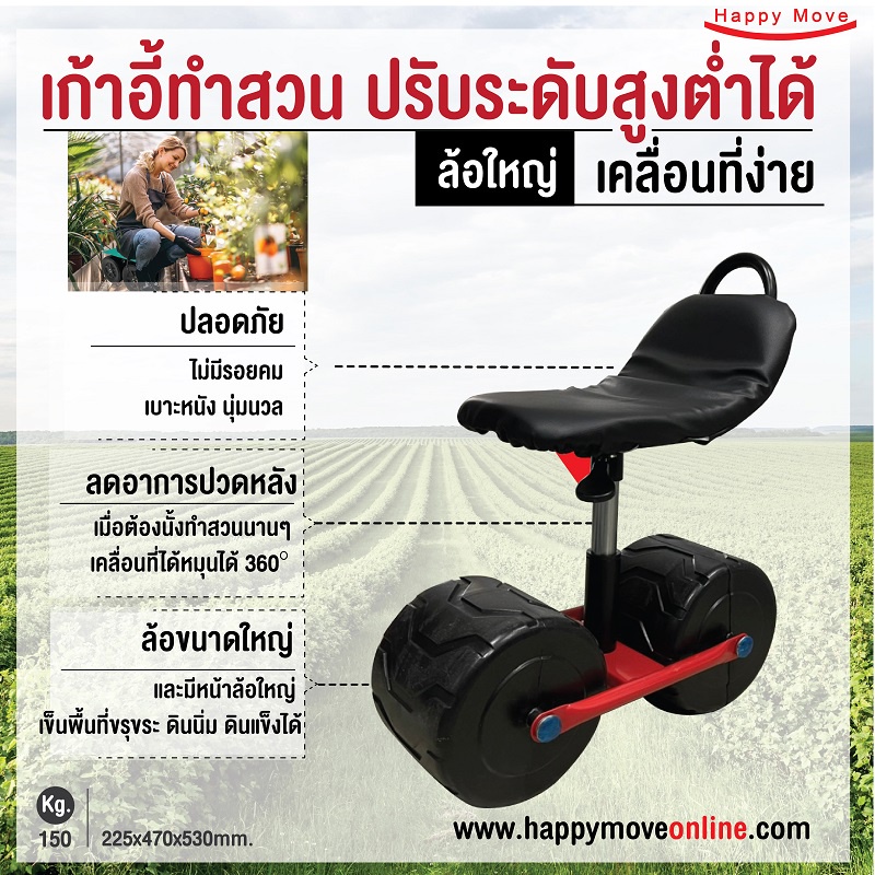 เก้าอี้ทำสวน นั่งในโรงเรือน ปลูกต้นไม้ เก้าเกษตรกรติดล้อ รับน้ำหนัก 100-150 กก.Happy Move