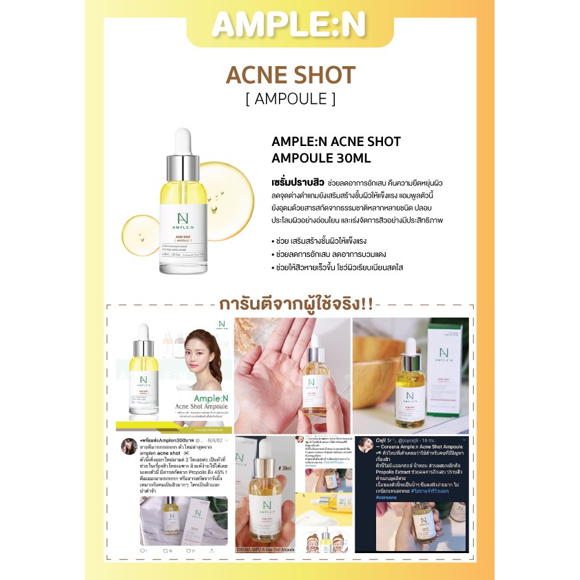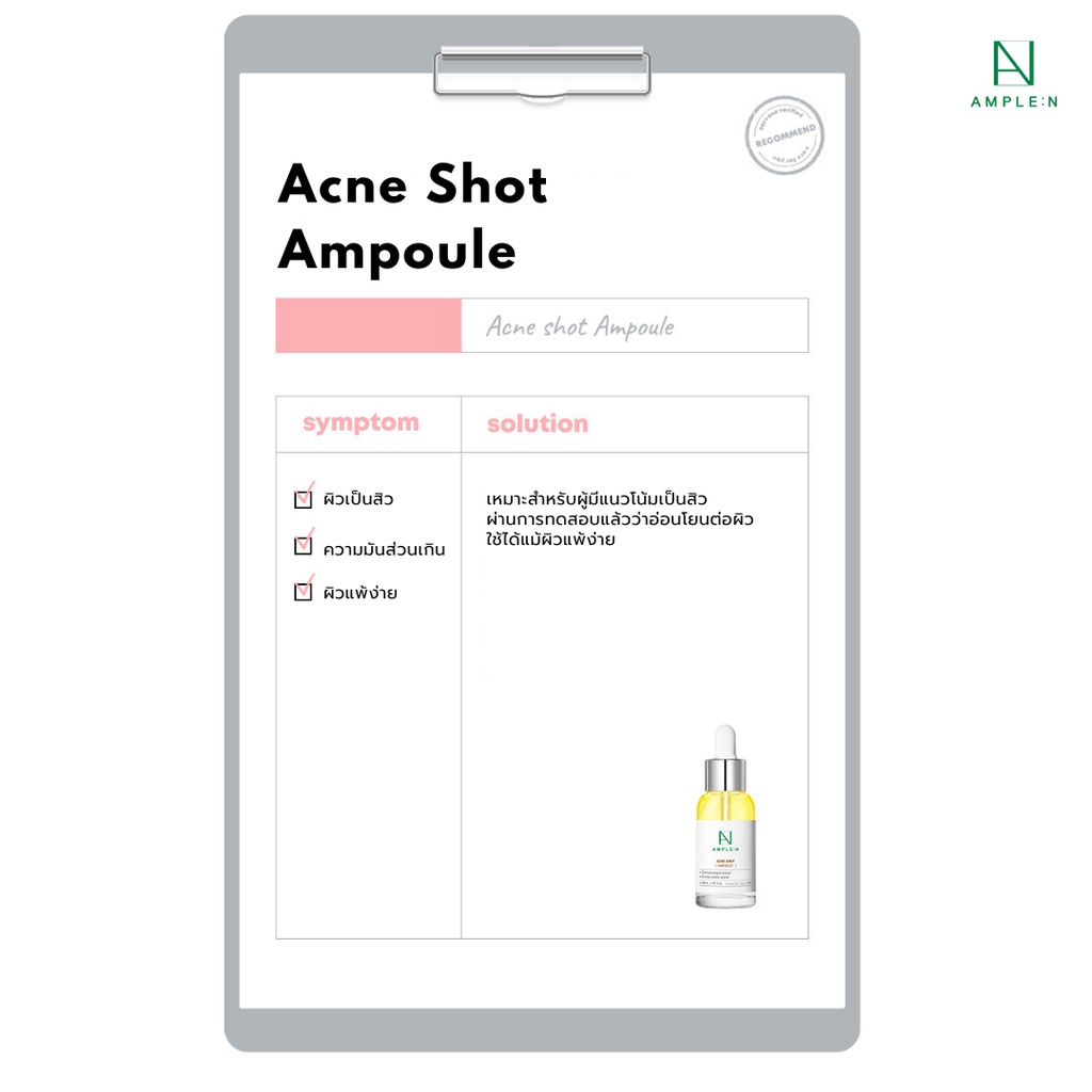 AMPLE:N Acne Shot Ampoule 30ml. เซรั่มปราบสิว ปลอบประโลมผิว ลดอาการอักเสบ