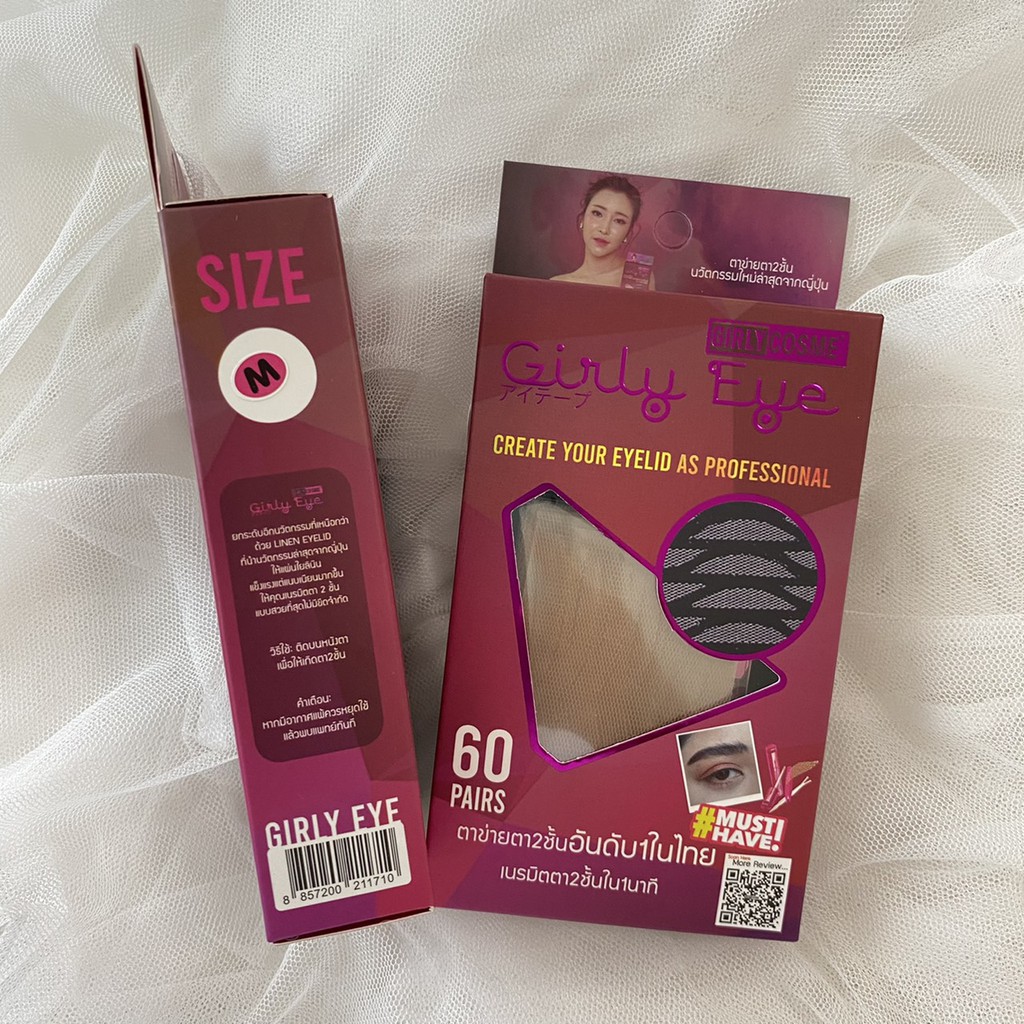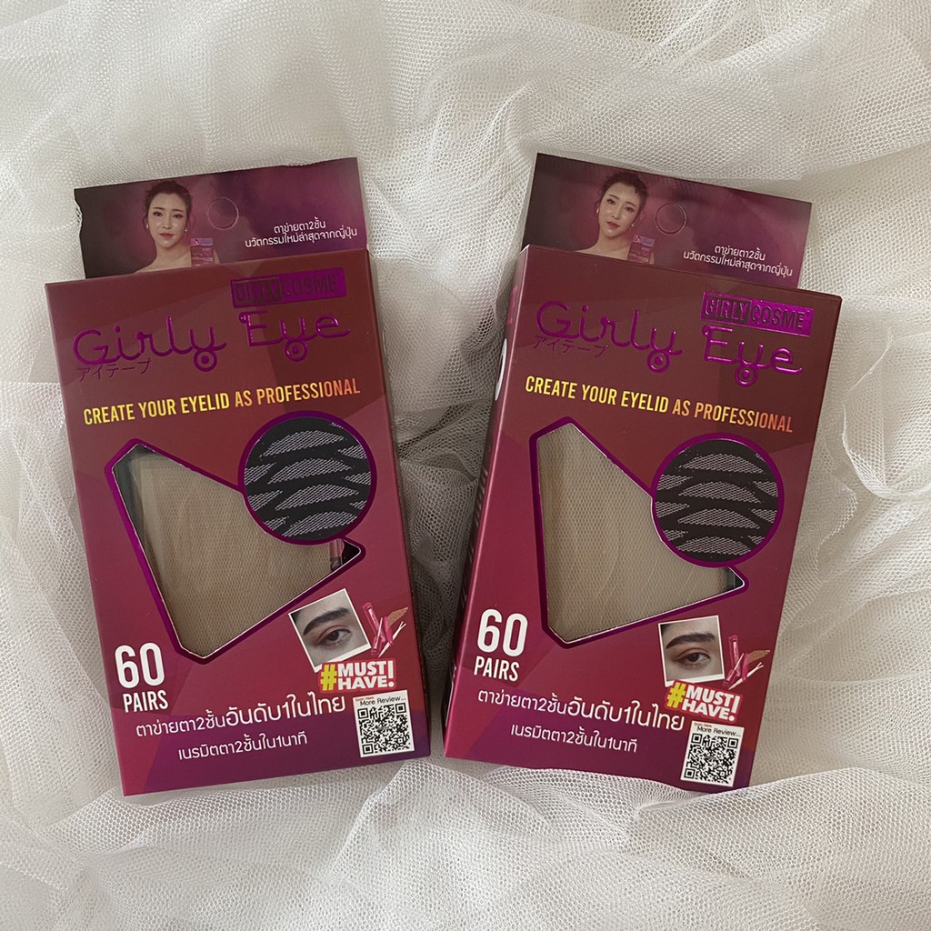 ตาข่ายติดตาสองชั้น เกิลลี่อายกล่อง 60 คู่ ใยลินิน มี 2 ไซต์ Girly Eye