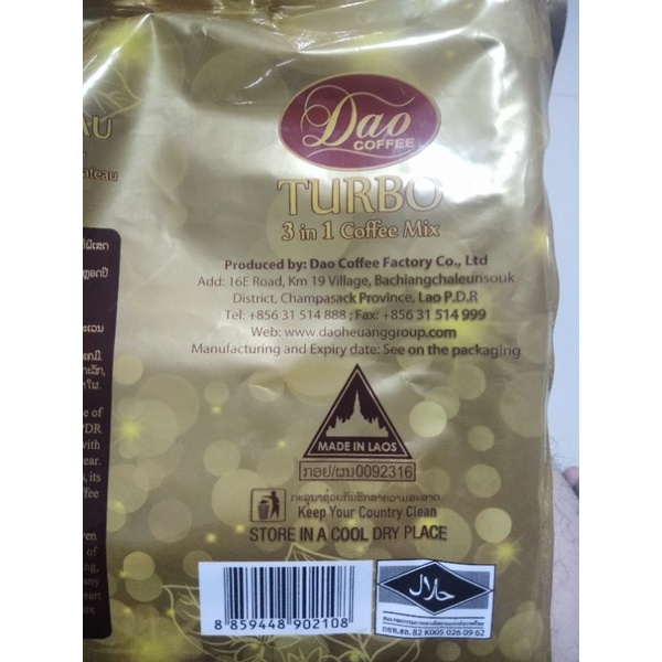 กาแฟดาว Dao COFFEE 3in1TURBOสีทอง 20ซองในห่อ