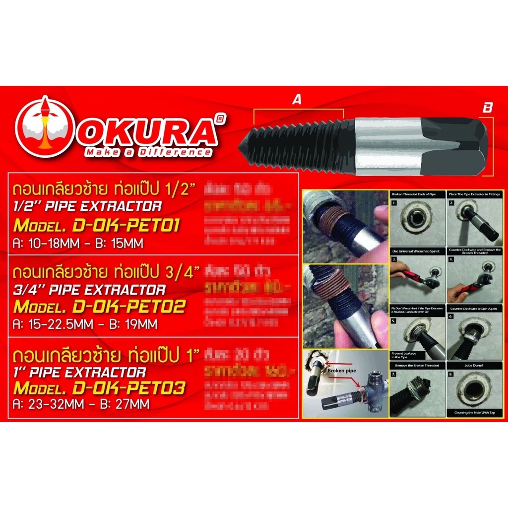 ประแจถอนเกลียวซ้าย Okura 4หุน 6หุน 1นิ้ว ประแจก๊อกน้ำ ใช้ถอดเกลียวประปา ถอนเกลียวซ้าย ถอนสกรู ถอดน็อคเสีย เกลียวหวาน