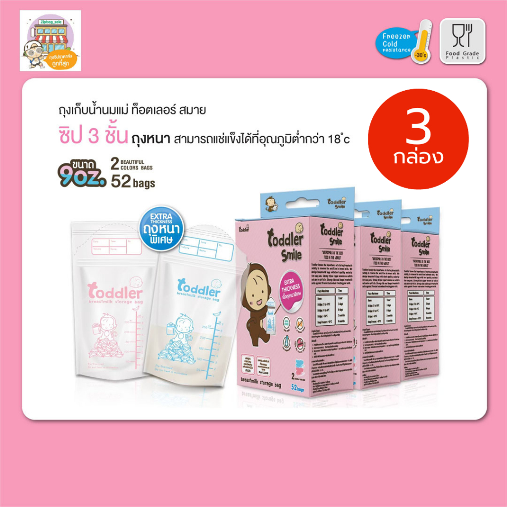 ถุงเก็บนม Toddler (กล่องใหญ่คุ้มกว่า) ขนาด 9oz 2 สี ชมพู–ฟ้า กล่องละ 52 ใบ ใส่นมสะดวก คุ้มค่ามาก