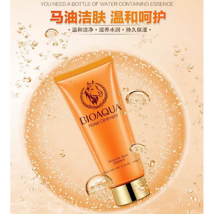 โฟมล้างหน้า สูตรสกัดจากน้ำมันม้า ช่วยให้ผิวชุ่มชื่น เนียนกระจ่างใส BIOAQUA Horse Ointment cleanser 100g.