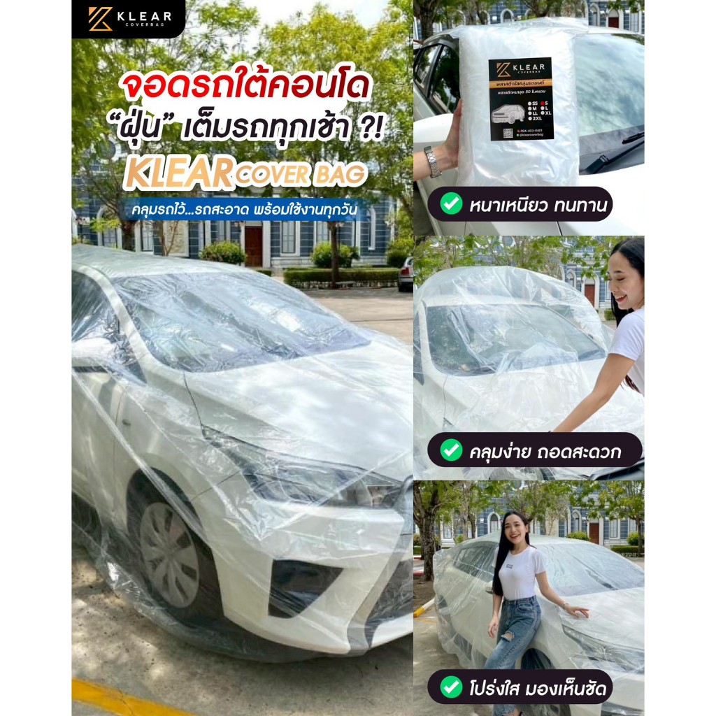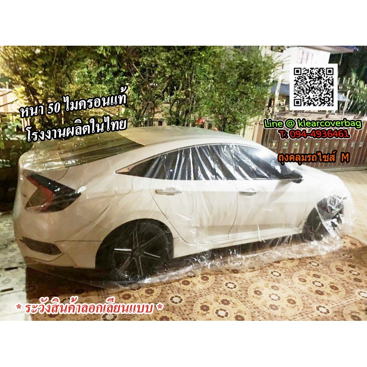พลาสติกคลุมรถ ถุงคลุมรถ พลาสติกใส Size M สำหรับรถเก๋ง ขนาดกลาง ใหญ่ รถแต่ง รถยุโรป หนา มียางรัดขอบ