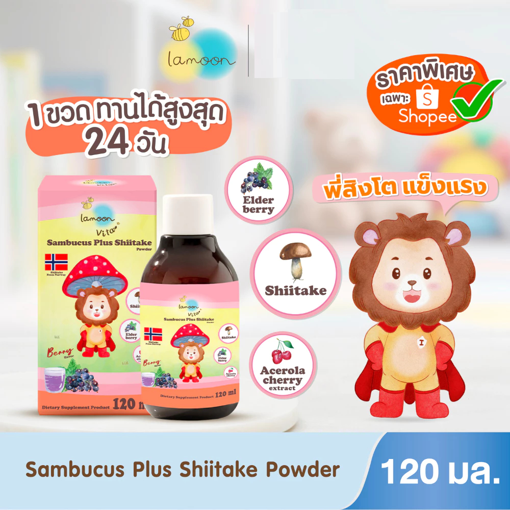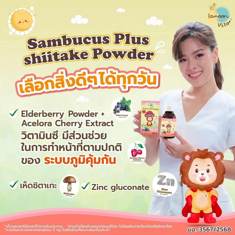 (LA03) Lamoon วิตามินเสริมภูมิต้านทาน(1กล่อง) Sambucus Plus Shiitake By Lamoon Vista