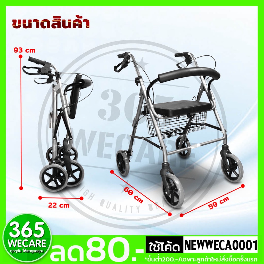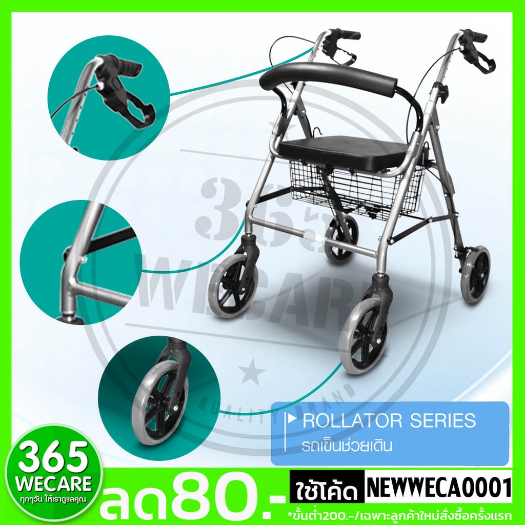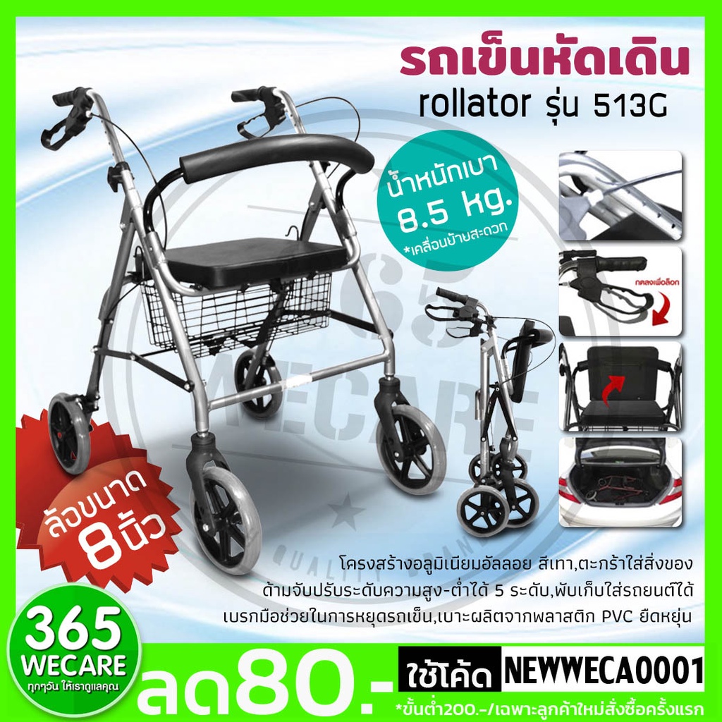 FASICARE Rollator ล้อ 8 นิ้ว รุ่น 513G สีเทา รถเข็นหัดเดิน ช่วยประหยัดพลังงานผู้ป่วย 365wecare