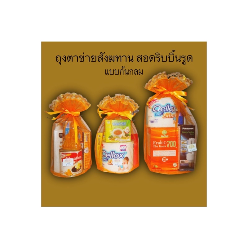 (1ใบ) ถุงสังฆทาน ฐานกลมแบบหูรูดในตัว ถุงทำบุญ สังฆทานเสริมบุญบารมี