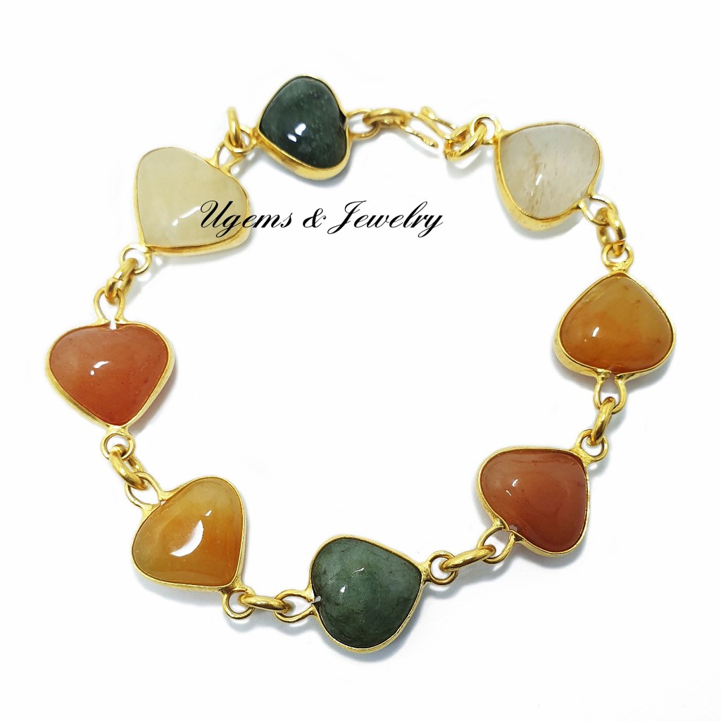 ชุดสร้อยคอหยกรูปหัวใจ เม็ดนูนสวย หยกนำโชค หยก5สี หยกพม่าแท้