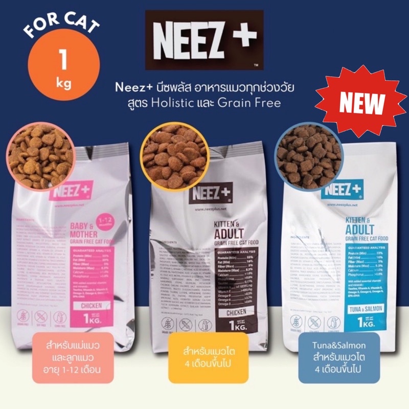 NEEZ+ Premium Cat Food ❤️😸 นีซพลัส อาหารเม็ดสำหรับแมวเกรดพรีเมี่ยม บรรจุ 10kg (ถุงบรรจุ 1kgx10ถุง)