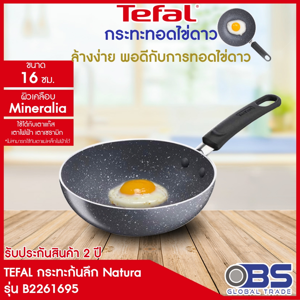 กระทะ tefal กระทะทอดไข่ดาว Natura รุ่น B2261695 ขนาด 16 ซม. สีเทา