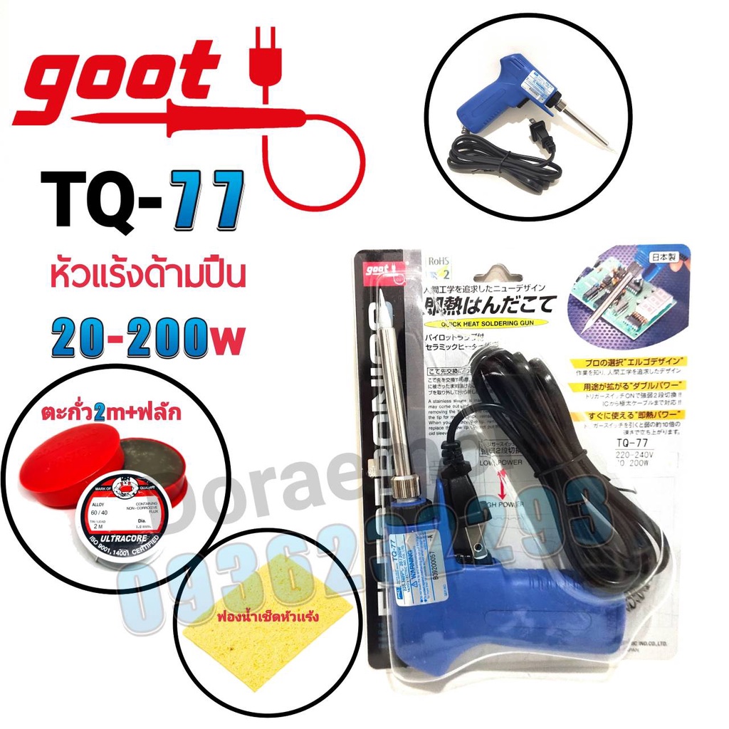 GOOT หัวแร้งด้ามปืน TQ-77 20W-200W+ตะกั่ว+ฟลัก+ฟองน้ำ+ขาวาง หัวแร้งบัดกรี
