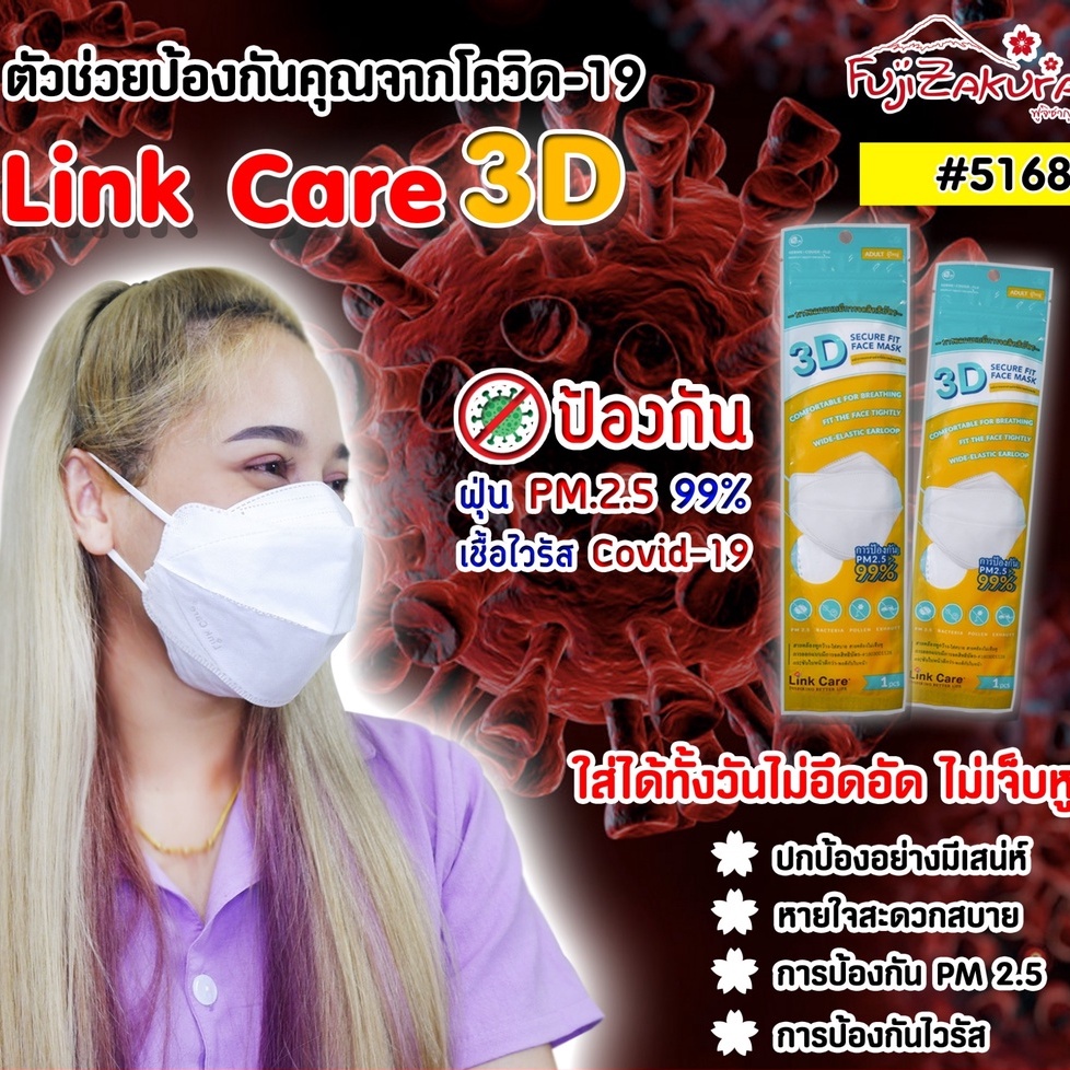 หน้ากากอนามัย 3 มิติ ผู้ใหญ่ สีขาว *ยกแพค 20 ชิ้น*Link Care 3d Mask หน้ากากอนามัยป้องกันไวรัสและฝุ่นPM 2.5 3D FACE MASK