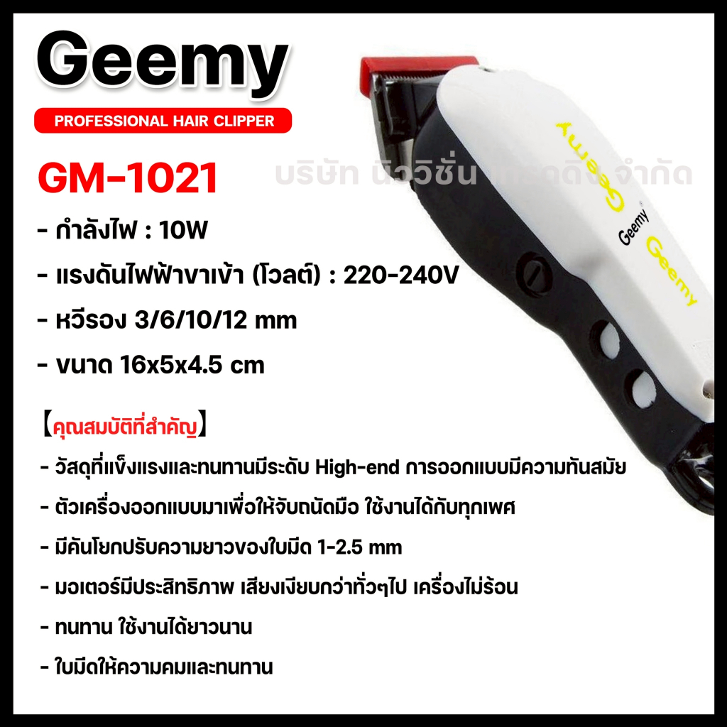 Gemei / Geemy ปัตตาเลี่ยนมีสาย แบตตาเลียน มีสาย รุ่น GM-1021 GM1021 PROFESSIONAL HAIR CLIPPER