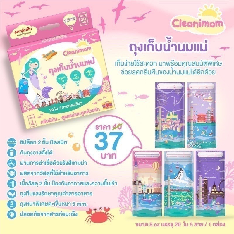 ถุงเก็บน้ำนมแม่ Cleanimom ลดกลิ่นหืนในนมแม่ ถุงหนา ตั้งได้ ขนาด 5oz(24ใบ)/8oz(20ใบ)