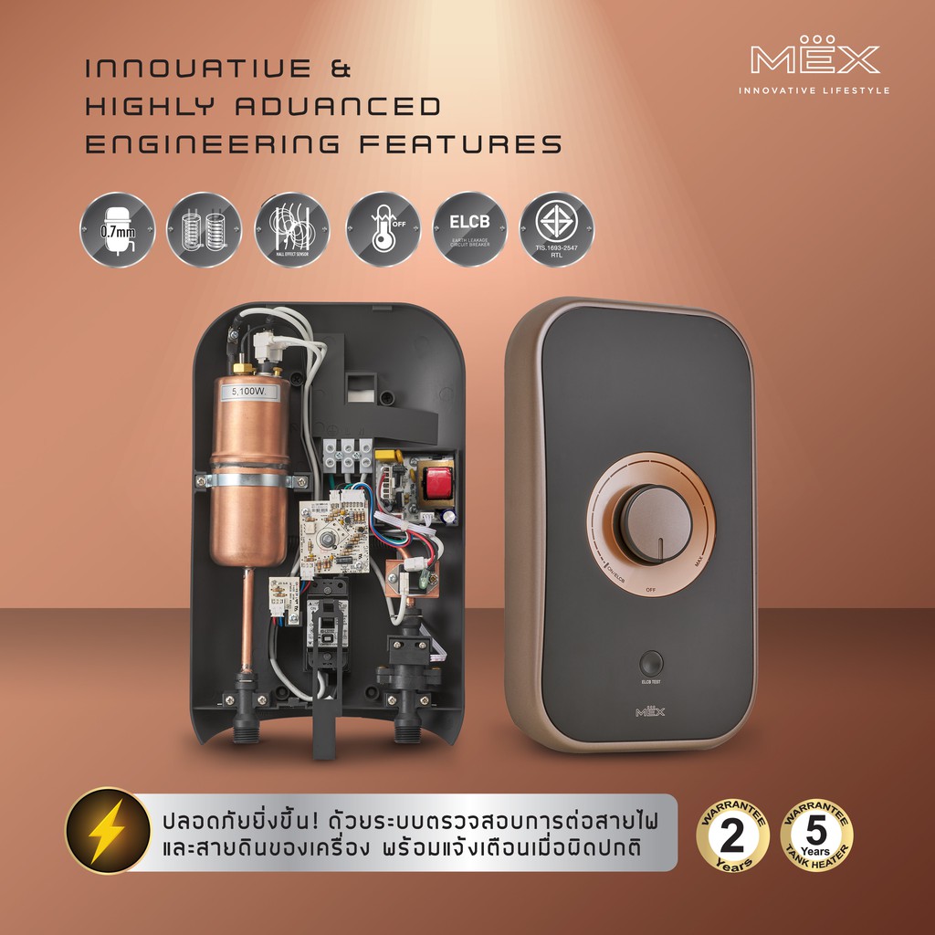 MEX เครื่องทำน้ำอุ่น 5100W : รุ่น CODE 5E (CB) : สี Copper/Black