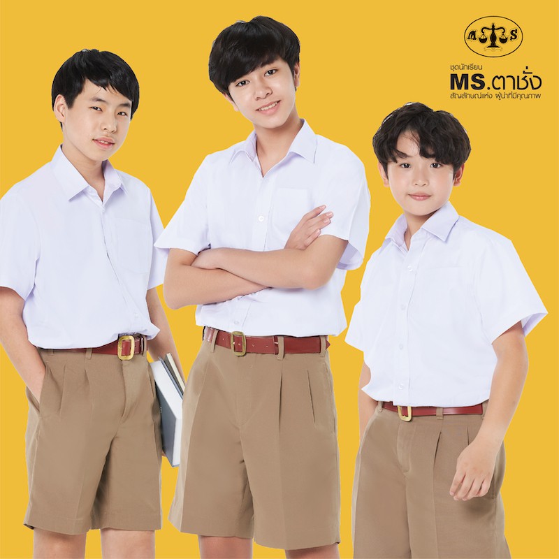 กางเกงนักเรียนชายสีกากี กางเกงลูกเสือ ยาว 18 นิ้ว MS ตาชั่ง - กางเกงตาชั่ง