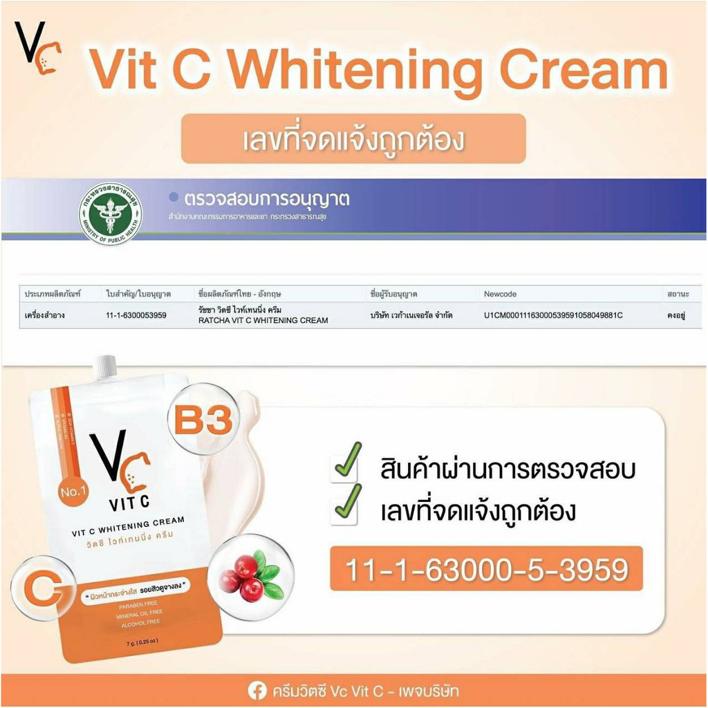VC Vit C Whitening Cream / Ratcha Hya Booster Cream 7g. ครีมวิตามินซี รัชชา ไฮยา บูสเตอร์ ครีม แบบซอง