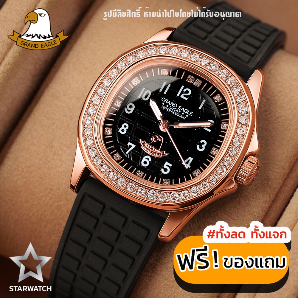 GRAND EAGLE นาฬิกาข้อมือผู้หญิง รุ่น GE8037L ของแท้ พร้อมกล่อง ปลายทางได้ สายซิลิโคน PinkGold/Black