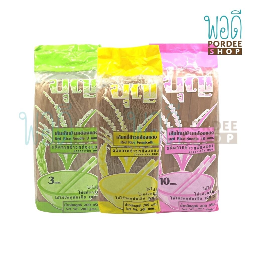 เส้นใหญ่ข้าวกล้องแดง ตราบุญ 200 กรัม