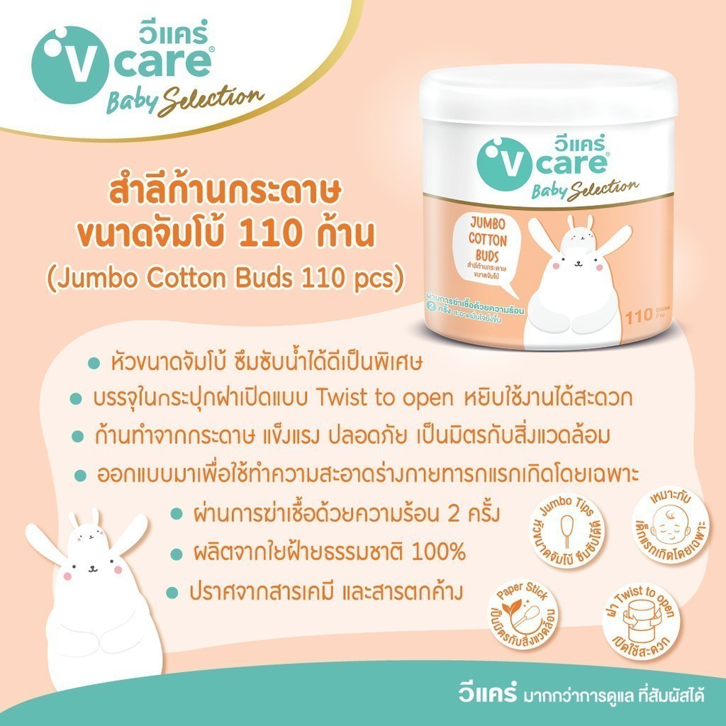 V CARE วีแคร์ สำลีก้านสำหรับเด็ก กระดาษขนาดจัมโบ้ 110 ก้าน
