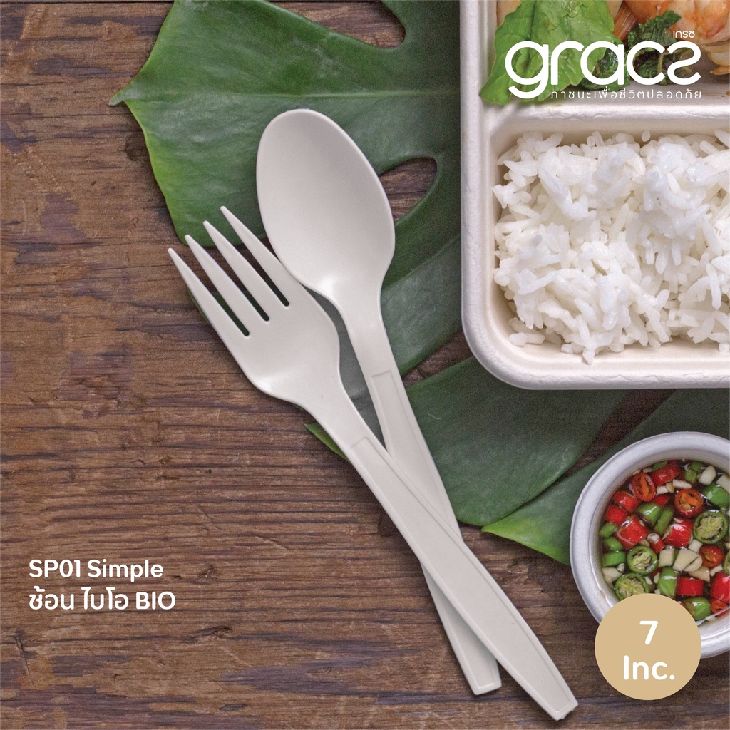 GRACZ ช้อน 7 นิ้ว รุ่น SP01 ใช้แล้วทิ้ง พลาสติก ย่อยสลายได้