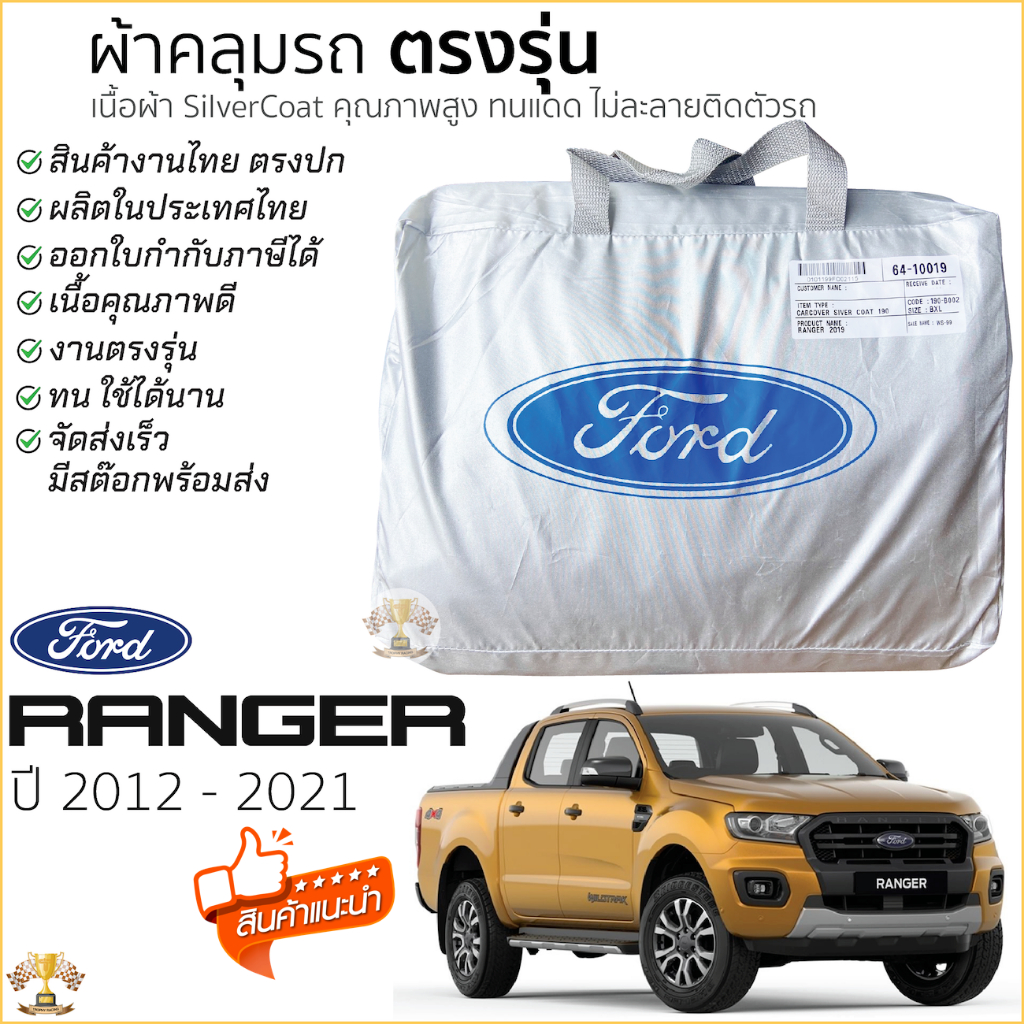 ผ้าคลุมรถ FORD RANGER 2012 - 2021 XL,XLT, WILDTRAK ของแท้ งานโชว์รูม 4ประตูและ2ประตู ตรงรุ่น Silver Coated