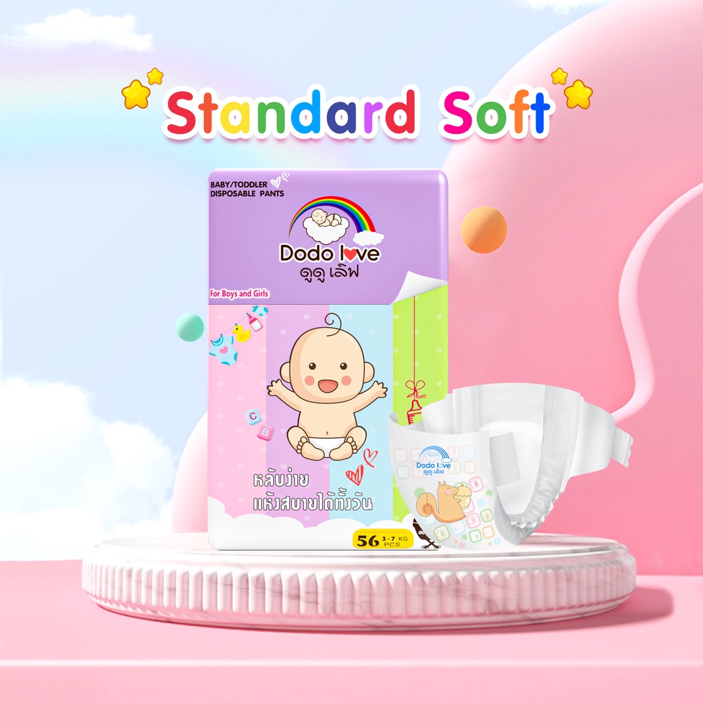 DODOLOVE Standard Soft กางเกงผ้าอ้อม (แพ็คเดี่ยว) Size NB - 4XL นุ่ม บางเบา ใส่สบาย