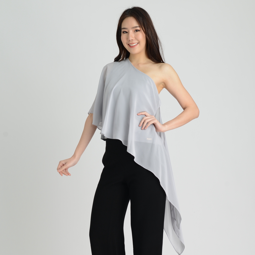 L'Officiel Party Skirt Colorful ลอฟฟิเซียล เสื้อไม่มีปก แขนสั้น ผ้าโพลีเอสเตอร์ สีเทา (FS34GY)