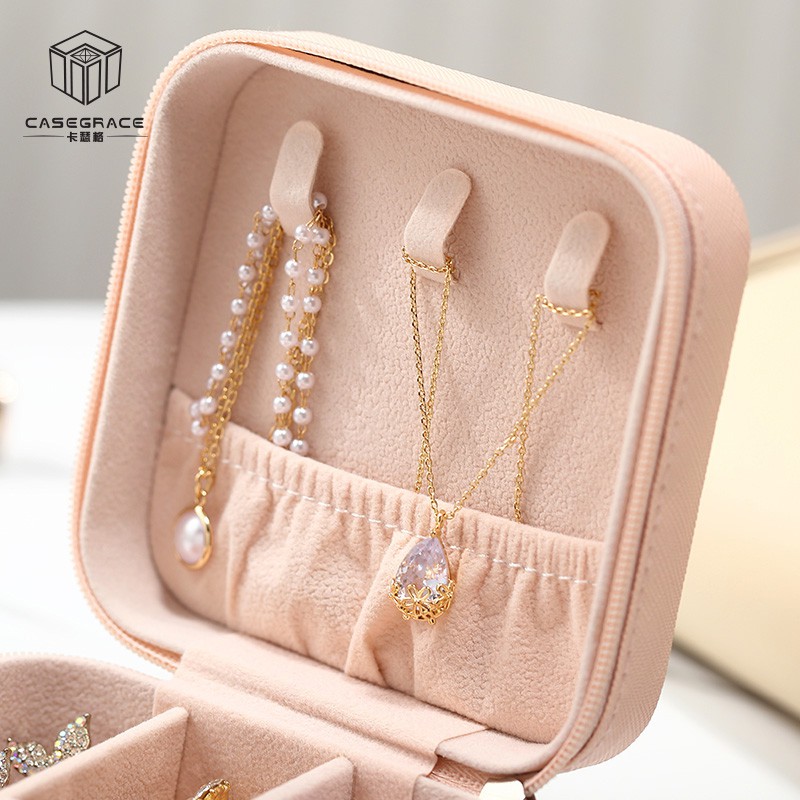 Casegrace กล่องเครื่องประดับ หนัง PU ผ้ากำมะหยี่ แบบพกพา ขนาดเล็ก สำหรับใส่ต่างหู สร้อยคอ