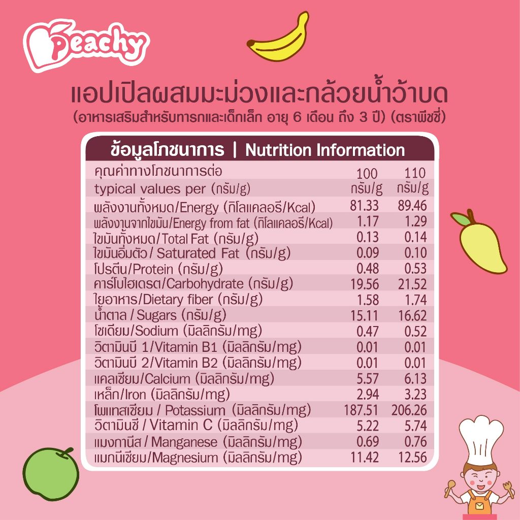 Peachy อาหารเสริมสำหรับเด็ก รสแอปเปิลผสมมะม่วงและกล้วยน้ำว้าบด 1 ถุง (R2)