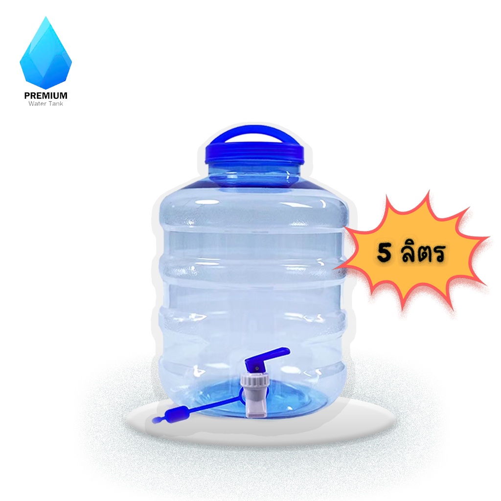 Premiumwatertank ถังน้ำ ถังน้ำดื่ม PET ถังน้ำมีก๊อกพร้อมหูหิ้ว ขนาด 5ลิตร ลาย 1X